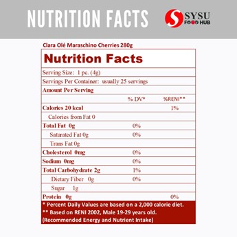 Make life sweeter with our generous serving of plump and juicy maraschino cherries. Bathed in aromatic syrup without the aftertaste, our cherries are crisp and firm to bite. Whole stems guarantee that the fruits are carefully picked at full-flavored ripeness. Add a pop of red into your coctails, serve as fun party treats, garnish on your favorite baked and kitchen recipes, top on desserts, or simply enjoy every little sweet cherry piece as it is!