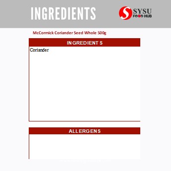 Be the first to review “McCormick Coriander Seed Whole 500g”